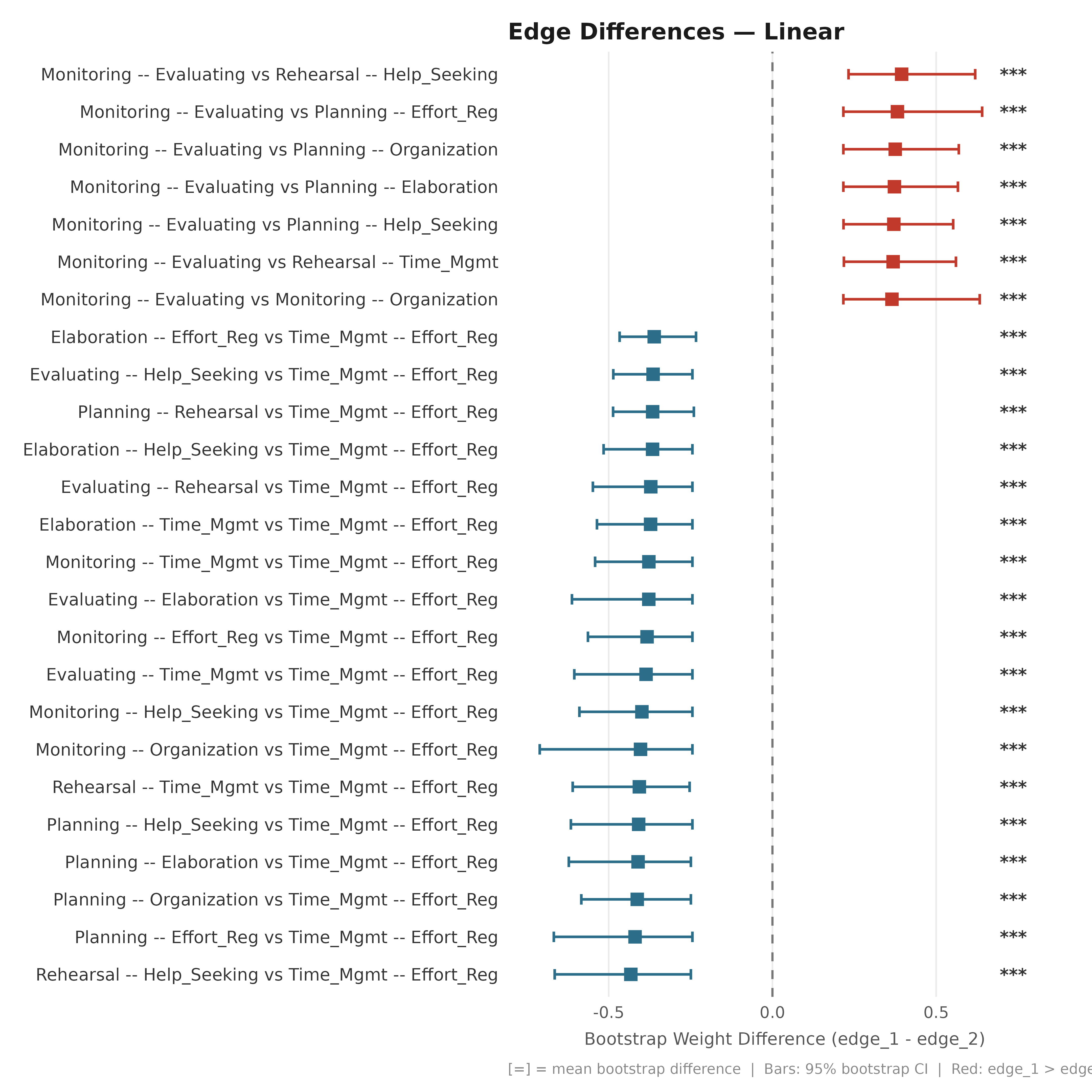 plot_edge_diff_forest(boot_srl, layout = "linear", n_top = 25,
