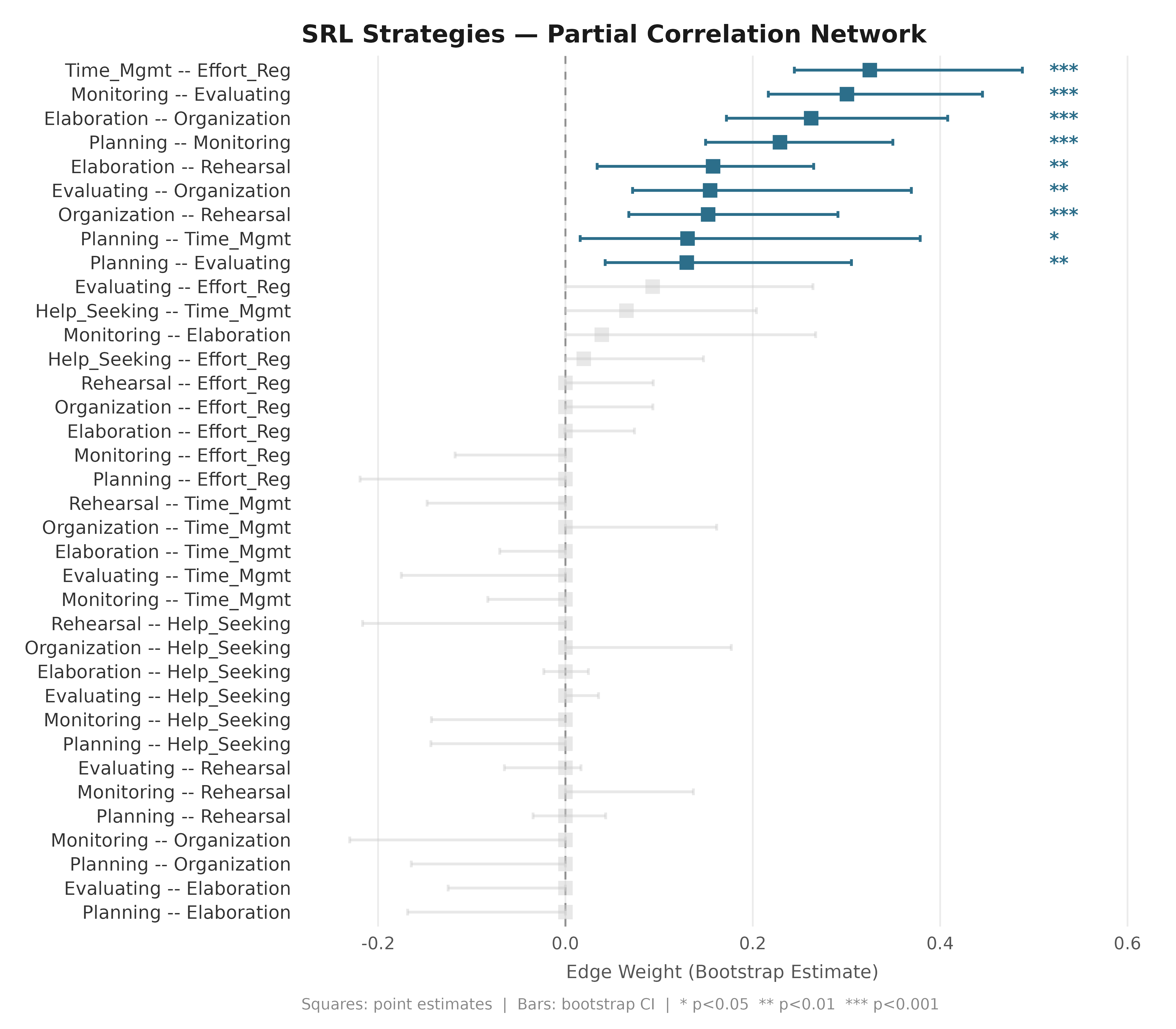 boot_srl <- boot_glasso(net_srl, iter = 200, seed = 42)3. Edge Difference Plots (glasso)