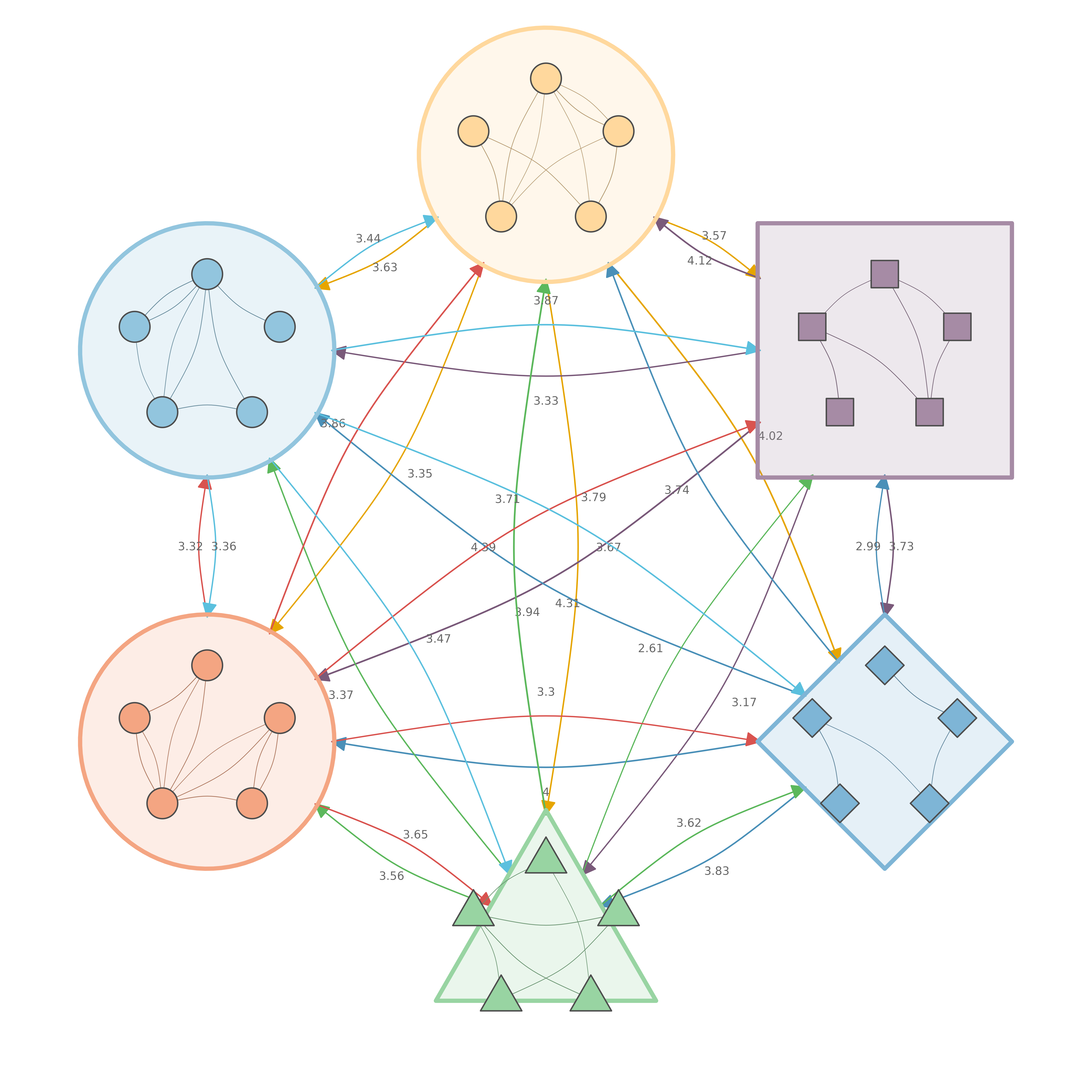 Clustered network with summary edges between clusters.